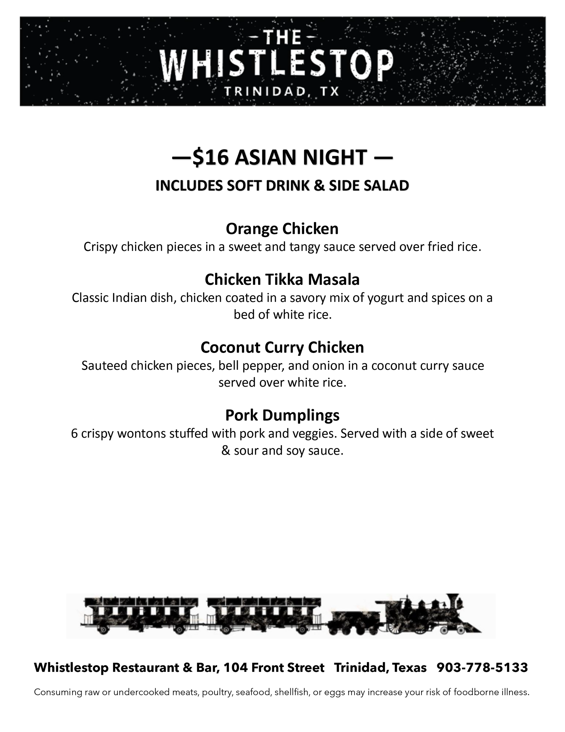 THE WHISTLESTOP WEDNESDAY FAMILY NIGHT DINNER MENUS