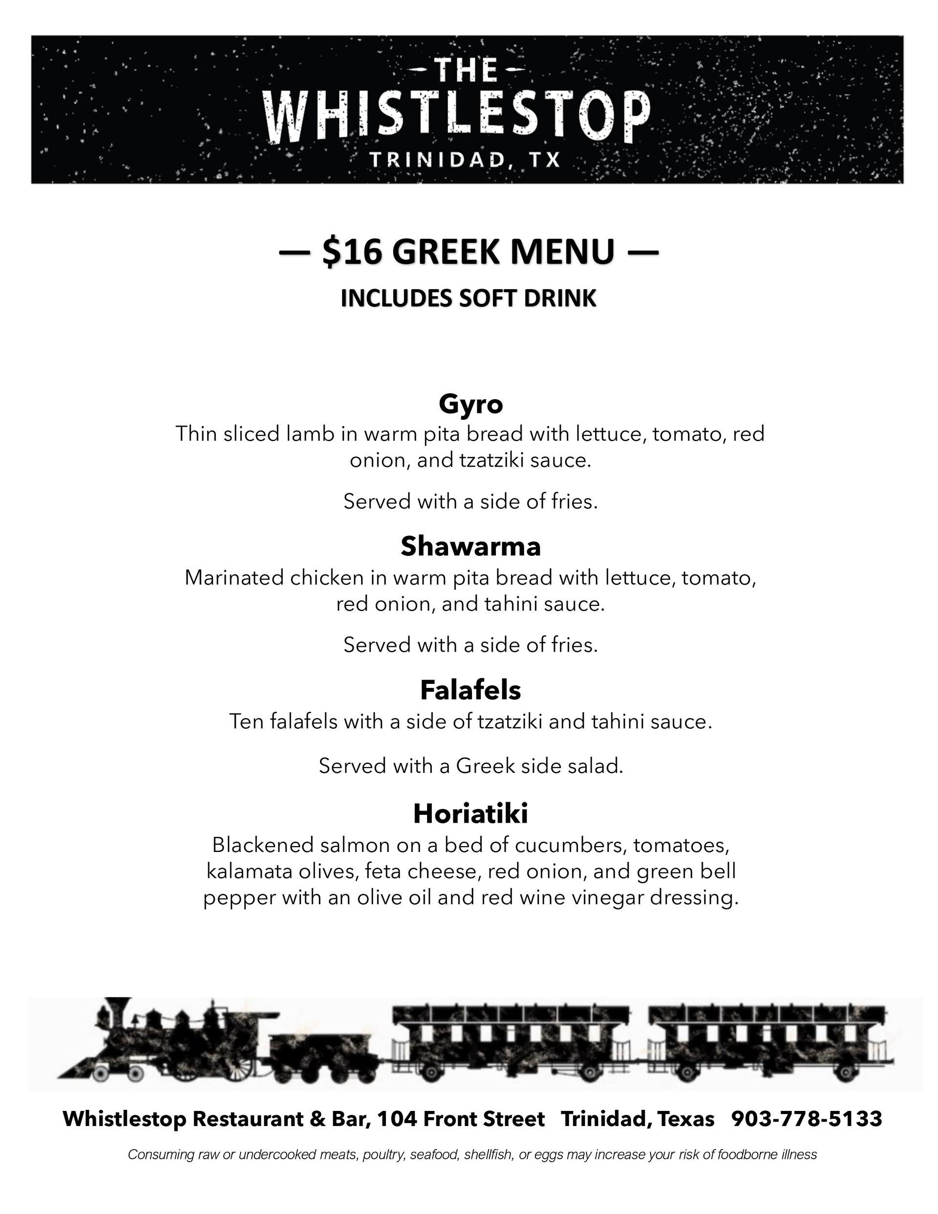Our regular dinner menu will also be available.